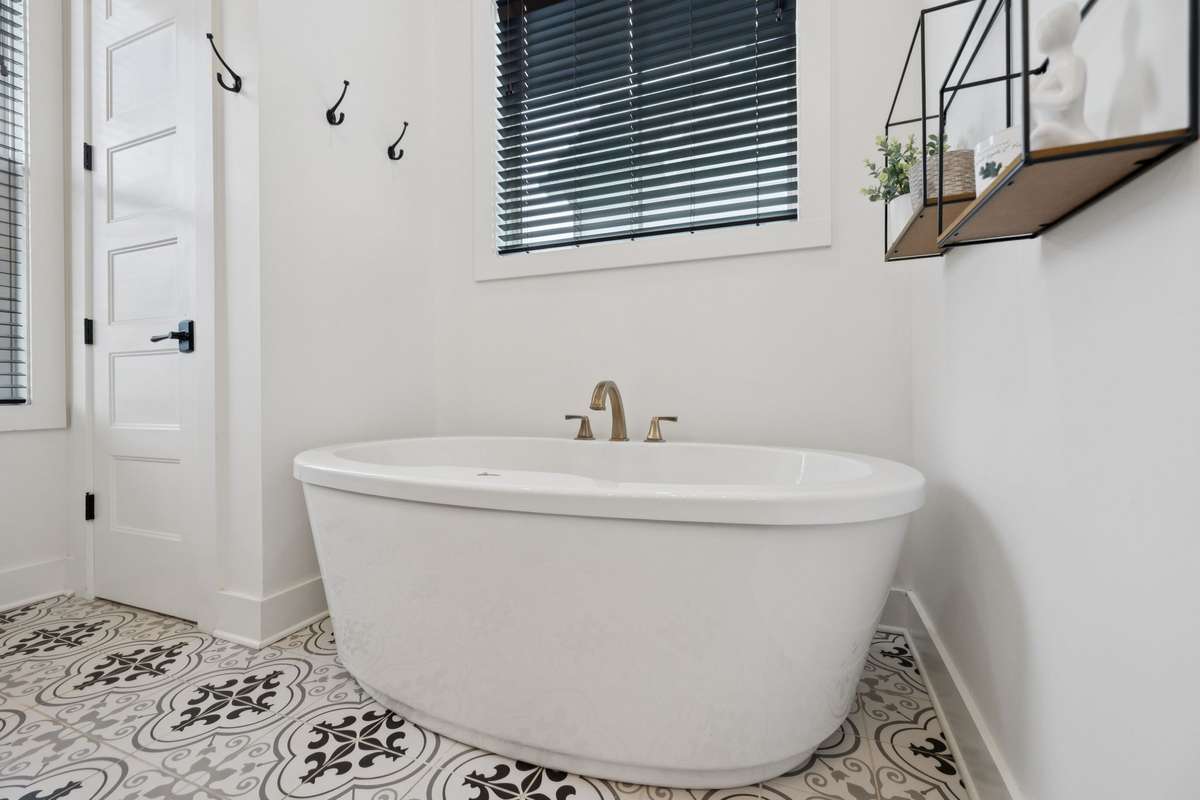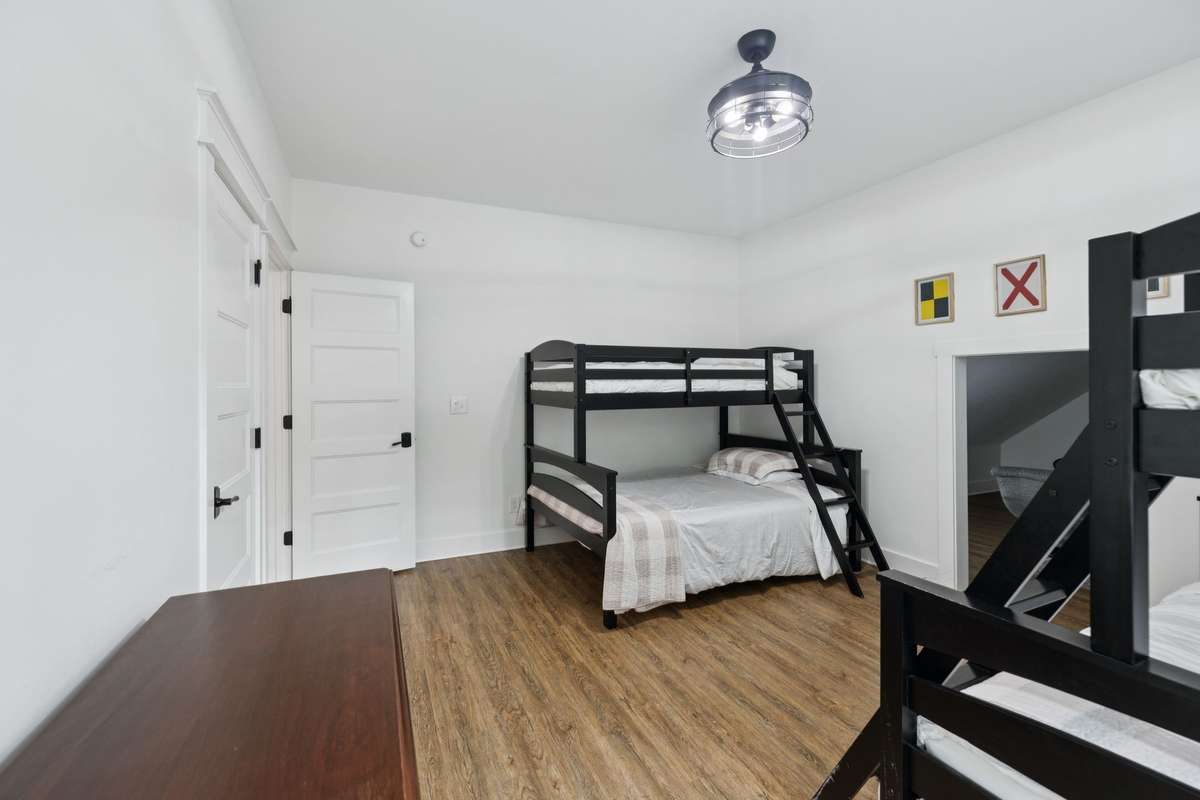 Upstairs, you’ll find four additional bedrooms and fun surprises. One serves as a guest suite with its own private bath, while another includes an adjoining sitting room that could also be a library, office, or reading retreat. A large bunk room with a hidden loft makes the perfect hangout for games or movie nights, creating a floorplan that truly offers room for everyone. Ornate tile details carry throughout the home, adding character and design interest at every turn.
