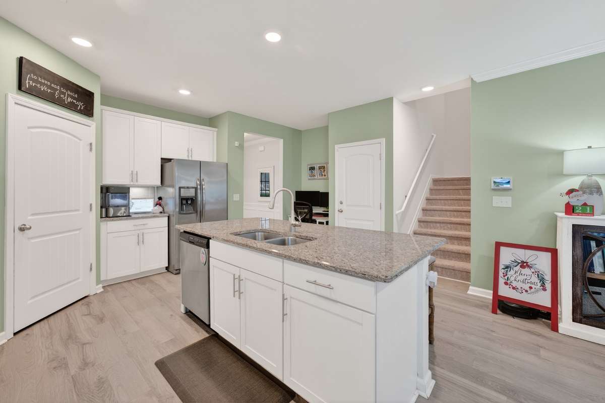 A beautifully well maintained 5- bed, 3. 5- bath move in ready home featuring a main- level primary suite with a spacious walk- in closet, tiled shower, garden tub, and double vanities. Upstairs offers four additional bedrooms and a large bonus area. The open- concept layout includes a kitchen with a center island overlooking the generous dining and living spaces, complete with a stunning gas- log fireplace. The kitchen boasts granite countertops, a custom subway- tile backsplash, custom cabinetry, a large walk- in pantry, and stainless steel appliances—including a gas range that remains. This home is loaded with upgrades, including smart- home technology and an irrigation system for the yard. The garage comes equipped with built- in shelving for ample storage. Enjoy a private, fenced backyard with a covered patio, perfect for grilling or relaxing outdoors. The community offers fantastic amenities such as a neighborhood pool, play ground park, and walking trails! This property is just walkling distance to the pool and club house! Lender to pay 1% of closing cost from loan amount if the buyers use Keith Go Lending Team!