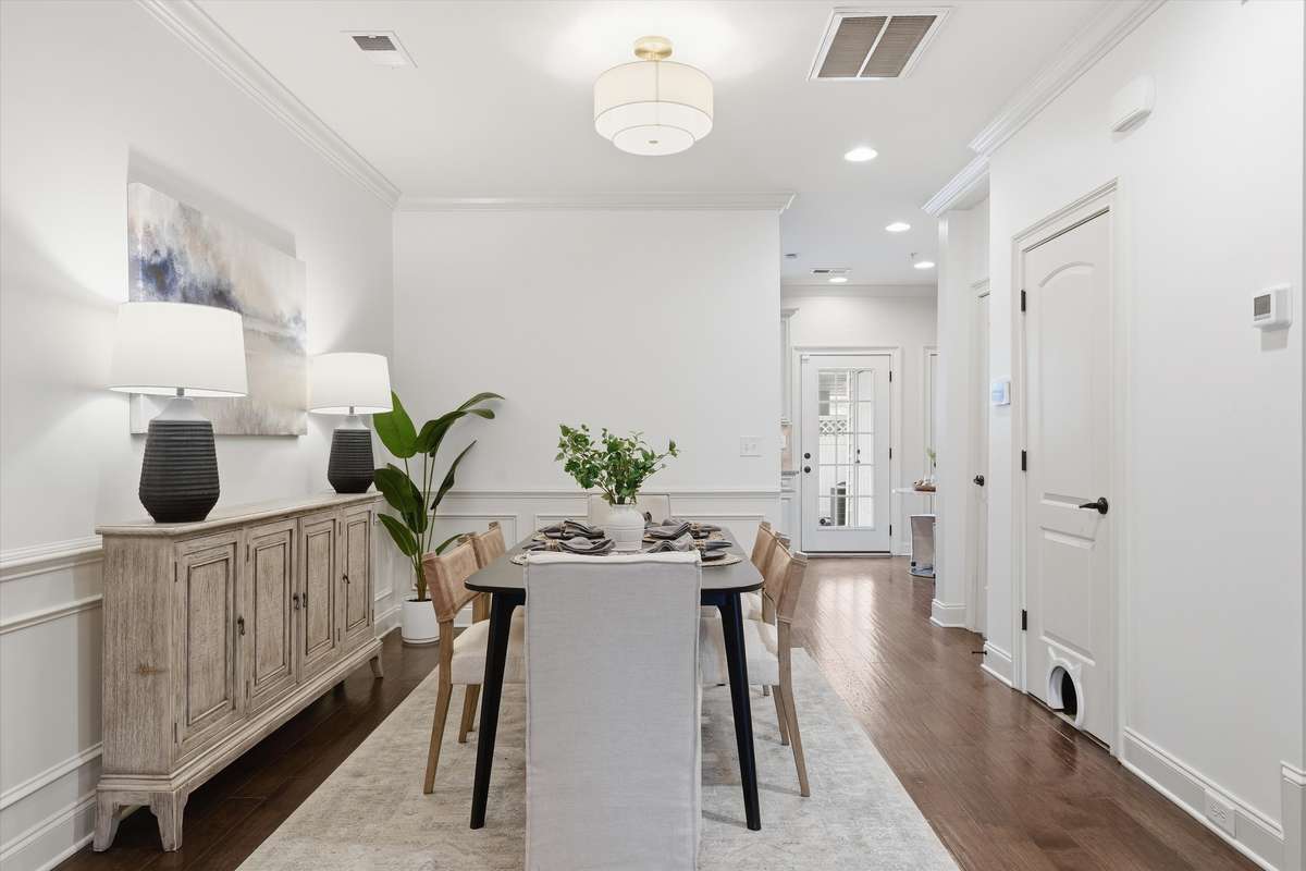 Inside, this move- in- ready townhome shines with updates and thoughtful details throughout. Freshly painted walls, newly refinished cabinets, brand- new lighting, and new ceiling fans in the bedrooms create a bright and welcoming feel. The main level features hardwood flooring, crown moulding, 5½- inch baseboards, granite countertops, and stainless steel appliances. A cozy wood- burning fireplace anchors the living area and enjoy a new 2021 roof.