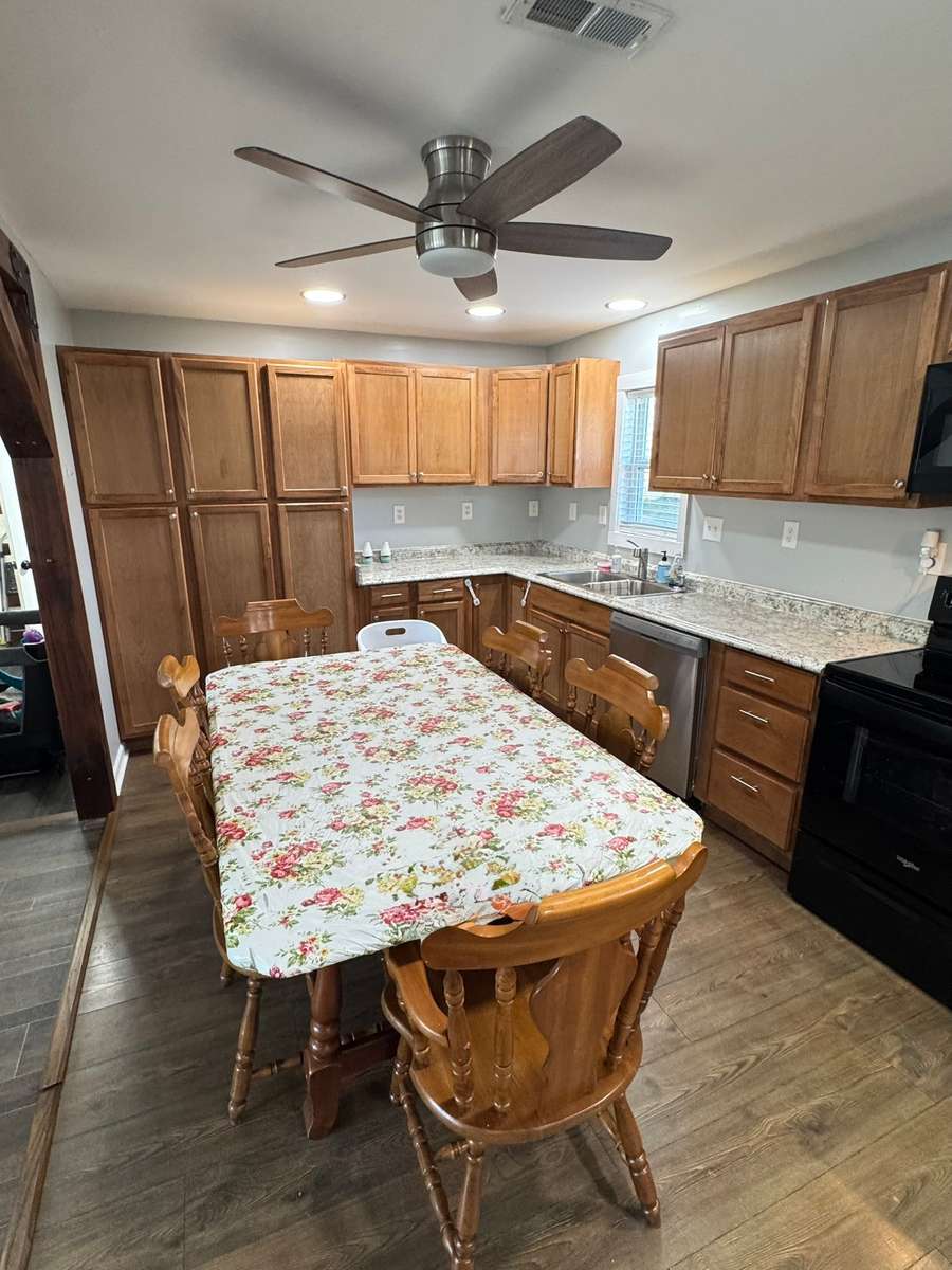 Peaceful country living on land totaling 1. 1+ - acres! This adorable 3- bedroom, 1- bath home has been beautifully converted to an open concept using stunning solid wood beams, adding warmth, character, and a true farmhouse feel. Recent updates include new drywall throughout, fresh interior paint, and brand- new electrical wiring. Major systems are already done for you! The roof, siding, HVAC split system with natural gas heat, and all new ductwork were replaced just 2 years ago. The home also features brand new double- pane, energy- efficient windows and doors, along with new insulation throughout the walls and ceilings for year- round comfort and efficiency. An additional back lot offers an RV hookups with water and electricity, making this property even more versatile and valuable. Plus, it comes with all kinds of furnishings! The living room furniture and bedroom furniture will stay! The practically new kitchen appliances as well as washer and dryer will also stay with the home. The seller is leaving new luxury vinyl plank flooring as well for the next owner to complete the finishing touches just the way they like. The metal siding exterior offers exceptional durability, low maintenance, and energy efficiency. Once outside you' ll enjoy wide- open space with room for animals, gardens, or future expansion. RV water and electric hookups are convenient right along the driveway in the front as well as on the back lot—perfect for guests, travel lovers, or additional structures. Quiet rural setting with endless possibilities—this one is must- see. Seller is finishing up some paint on the trim. The China cabinet, and dining room table do not convey.