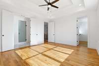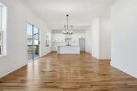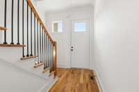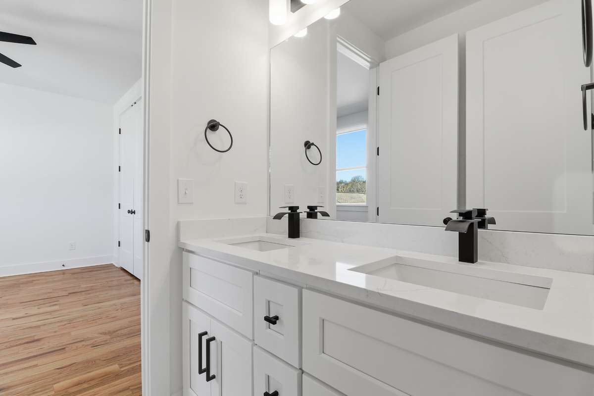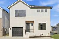 This thoughtfully designed home features sand- and- finish hardwood floors throughout, an open floor plan, and soaring 10- ft ceilings on the main level ( 9 ft on the second) . Elegant 8- ft doors enhance the upscale feel. The exterior boasts brick detailing around the foundation and half of the front. A fenced yard will be installed, adding privacy and charm.