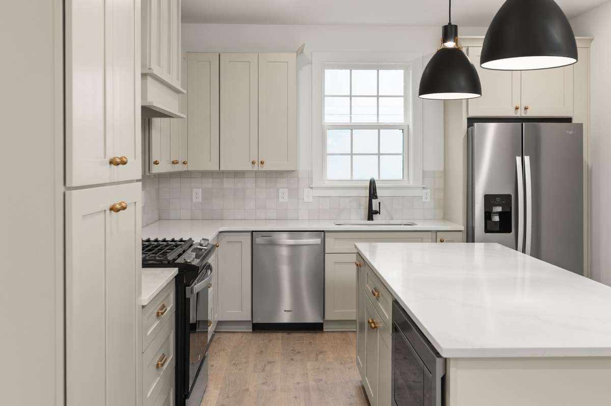 Beautiful kitchen layout with same cabinet and backsplash colors as our model!