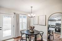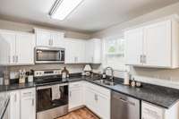Step into this beautifully designed 3- bedroom, 2- bath home where every detail has been thoughtfully curated. The moment you walk in, you’re greeted by a soaring vaulted ceiling in the living room, complemented by an elegant electric fireplace that instantly sets the tone for warmth and style. The open- concept layout flows effortlessly into a stunning kitchen featuring granite countertops, stainless steel appliances, and modern finishes that make cooking and entertaining a joy. Gorgeous LVP flooring runs throughout, adding both durability and a high- end look. Each room is decorated with exceptional taste, giving the home a fresh, move- in- ready feel that’s sure to impress any buyer. Tucked away in a peaceful, private setting, the property offers a quiet retreat with a concrete patio perfect for relaxing or hosting guests. This home truly has the “wow” factor—well kept, beautifully styled, and designed for easy living. Homes like this don’t last long!