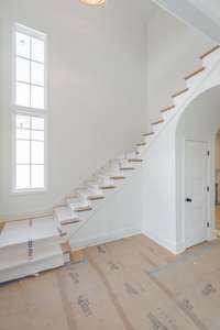 Enjoy effortless main- level living in The Townsend, Waters- Holland' s most popular villa plan in Ooltewah' s Grantham Square, complete with a spacious primary suite and an open- concept layout that frames stunning views of the community' s largest pond. Classic brick and fiber- cement siding, wrought- iron accents, and a covered front vestibule create timeless curb appeal. An 8- foot- tall wood entry door with 3/ 4- light glass welcomes you into a dramatic, light- filled two- story foyer with soaring ceilings. The front- facing great room captivates with a full wall of windows overlooking the pond and expansive greenspace. Centered on a gas fireplace flanked by custom built- in cabinetry, the room feels both grand and inviting. Flowing seamlessly from the great room, the gourmet kitchen and dining area are anchored by an oversized center island ideal for casual meals and entertaining. Finishes include quartz countertops, locally crafted custom cabinetry, and premium Fisher & Paykel stainless appliances featuring a 36- inch gas range, integrated dishwasher, and Sharp microwave drawer. The kitchen sink is perfectly positioned beneath a window that overlooks the private side yard, while a hidden walk- in pantry offers abundant storage. Tucked away for privacy, the main- level primary suite boasts a large walk- in closet with custom built- ins and a spa- like en suite bath with dual vanity, oversized 6' x 4' tiled shower, private water closet, and linen closet. A guest powder room, full laundry room with cabinetry and sink, and direct garage access complete the first floor. Upstairs, two generously sized bedrooms each include walk- in closets and share two full baths—one en suite and one conveniently nearby. The front bedroom enjoys the same sweeping pond views as the great room below. A spacious loft provides flexible space for a home office, media room, or play area and offers easy walk- out attic access for additional storage.