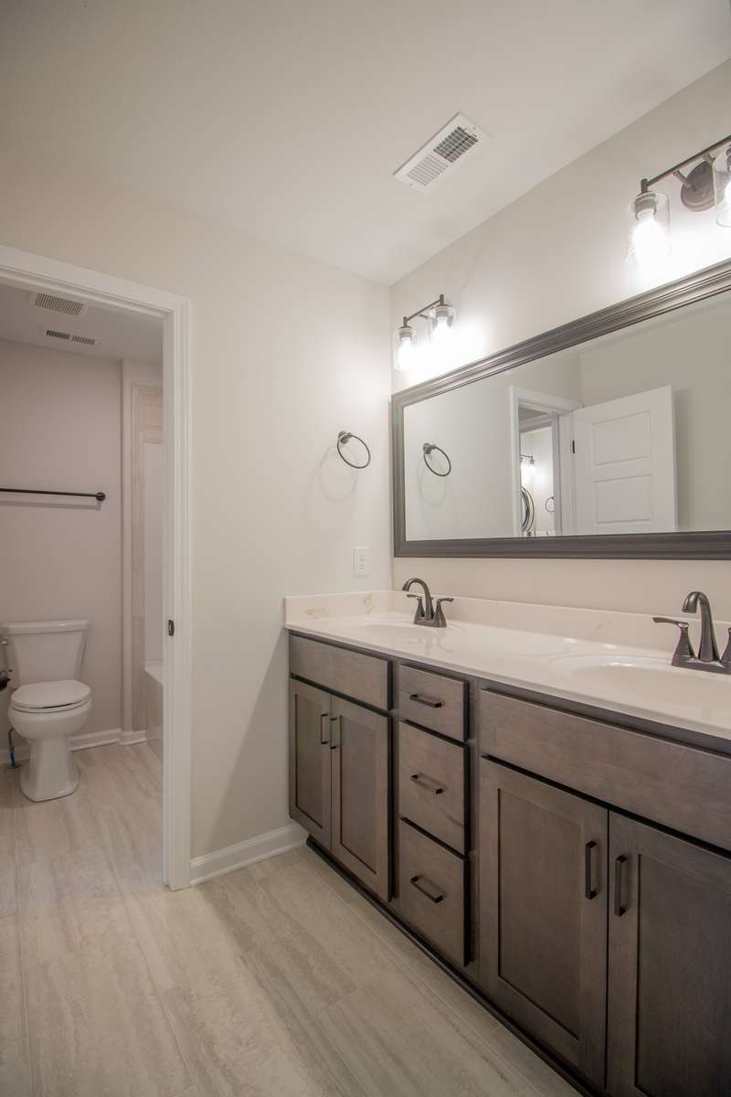Guest Bathroom with a Double Vanity, Large Framed Mirror and a Private Shower/Toilet Room!