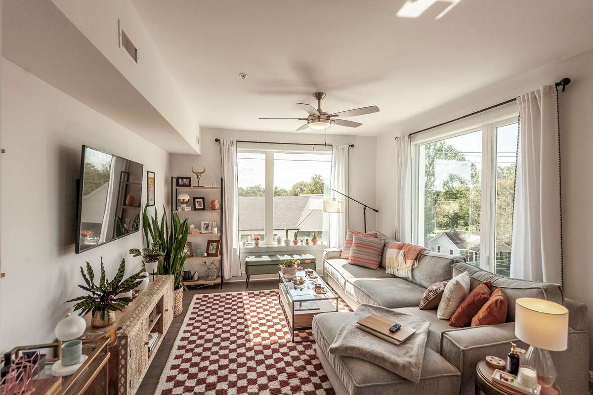 Move- in ready and offered furnished if desired! Top floor, corner unit with great views, lots of windows and natural light, and one of the best layouts in the building. This unit is unique with neighbors on only one side and a bright breakfast nook that other units don' t have. Perfect home for someone new to town or second home for someone who frequents Nashville for work, in highly- desired East Nashville. The bedroom has double closets, a massive bathroom with tiled floors and shower, and lots of vanity space and storage. The kitchen includes stainless steel appliances, great storage space and a tiled backsplash. The living area gives you plenty of space to entertain and enjoy the corner views with lots of light.
