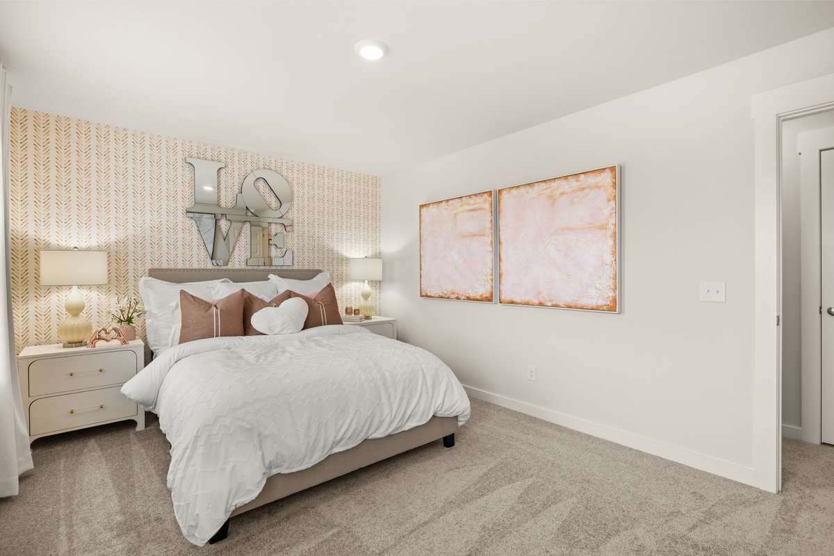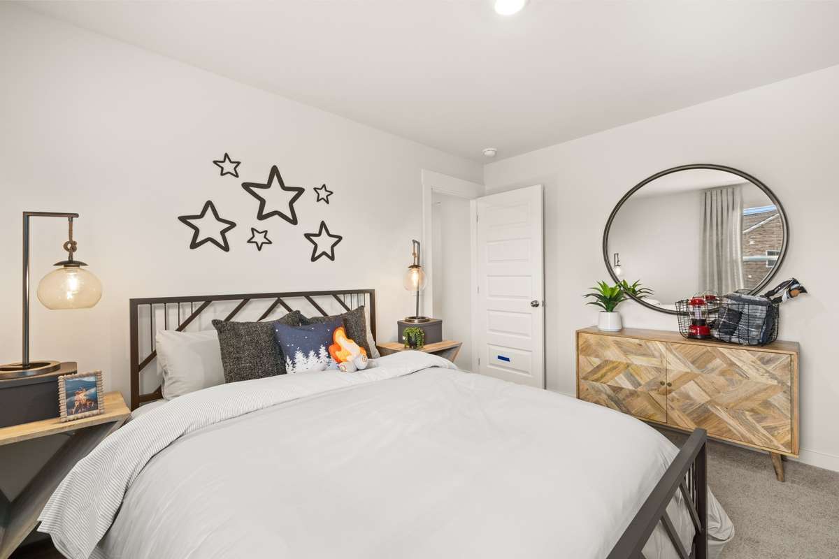 5 BED / 4 BATH / 2 CAR GARAGE. This new two- story home is designed to accommodate modern lifestyles with an inviting open floorplan and a convenient covered patio, perfect for entertaining. A secondary bedroom off the foyer is ready to be used as a guest suite or office, with a beautiful owner’s suite tucked into a private rear corner. Three bedrooms on the second level surround a versatile bonus room, providing a shared living space upstairs. * Images from a furnished model of this home. Actual configuration and features may vary.