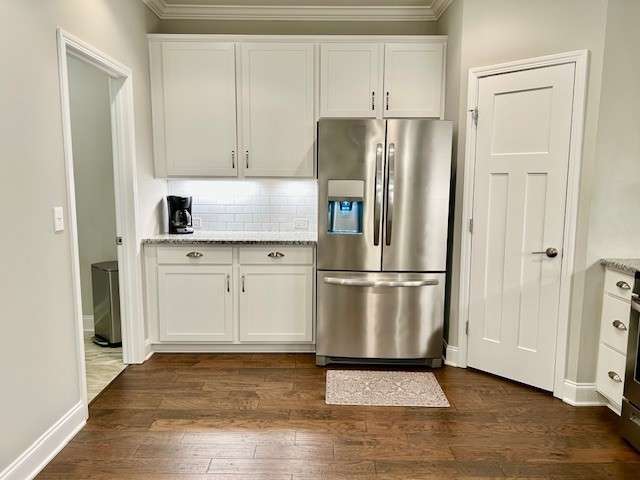 This stainless steel refrigerator in the kitchen conveys with the house.