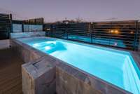 The home features a show- stopping heated rooftop pool spanning the full width of the deck, a custom cabana, sauna, wet bar, and unobstructed skyline views—creating one of the most impressive rooftop entertainment setups in Nashville.