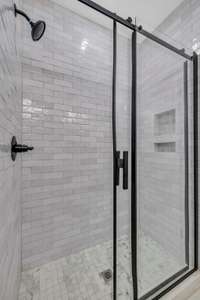 The primary suite is so spacious with great windows, private access to the back lawn, a full bath with double vanity, tile floor, oversized tile shower and a walk- in closet.