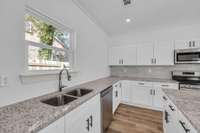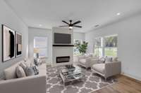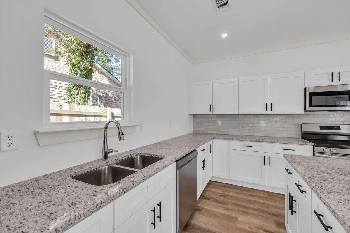 This modern urban design features and open living plan with 9' ceilings throughout. All the windows bring so much light to every room. The living area features a fireplace accented with ship lap. The easy living flooring throughout is a rich style wide plank. The kitchen is oversized with an abundance of cabinetry, pantry, granite counters, tile backsplash, island with breakfast bar and complete with all stainless appliances.