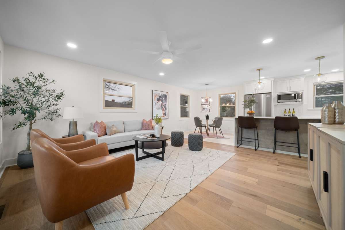 Welcome to a truly stunning, fully reimagined brick ranch in the heart of Nashville. Thoughtfully renovated from floor to ceiling, this 4 bedroom, 3 bath home blends timeless charm with fresh, modern finishes, offering Comfort, style, and flexibility for many different lifestyles. The open layout fills the room with natural light and warm, inviting design. Every surface has been updated new flooring, designer lighting, fresh paint, modern hardware, and beautifully appointed bathrooms make this home feel brand new while still honoring its classic ranch character. The kitchen serves as the heart of the home, redesigned with sleek cabinetry, updated countertops, modern appliances, and plenty of workspace for gatherings and everyday functionality. With four extremely spacious bedrooms and a thoughtful layout, the home offers incredible versatility. One wing could dual perfectly as an in law suite, or guest quarters, or even private multi- generational living space, complete with its own bathroom and natural separation from the main living areas. Whether you need room for extended family, a quiet home office, or a studio setup, this floor plan adapts effortlessly.