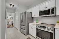 Step inside to find a bright and inviting open layout featuring a spacious living room with soaring ceilings and a cozy fireplace, a dedicated dining area, and a crisp white kitchen with stainless steel appliances, ample cabinetry, and great natural light. Upstairs, you’ll find two generously sized bedrooms, each with its own full bath—perfect for roommates, guests, or a private home office setup. The primary suite offers a large closet and a comfortable retreat.