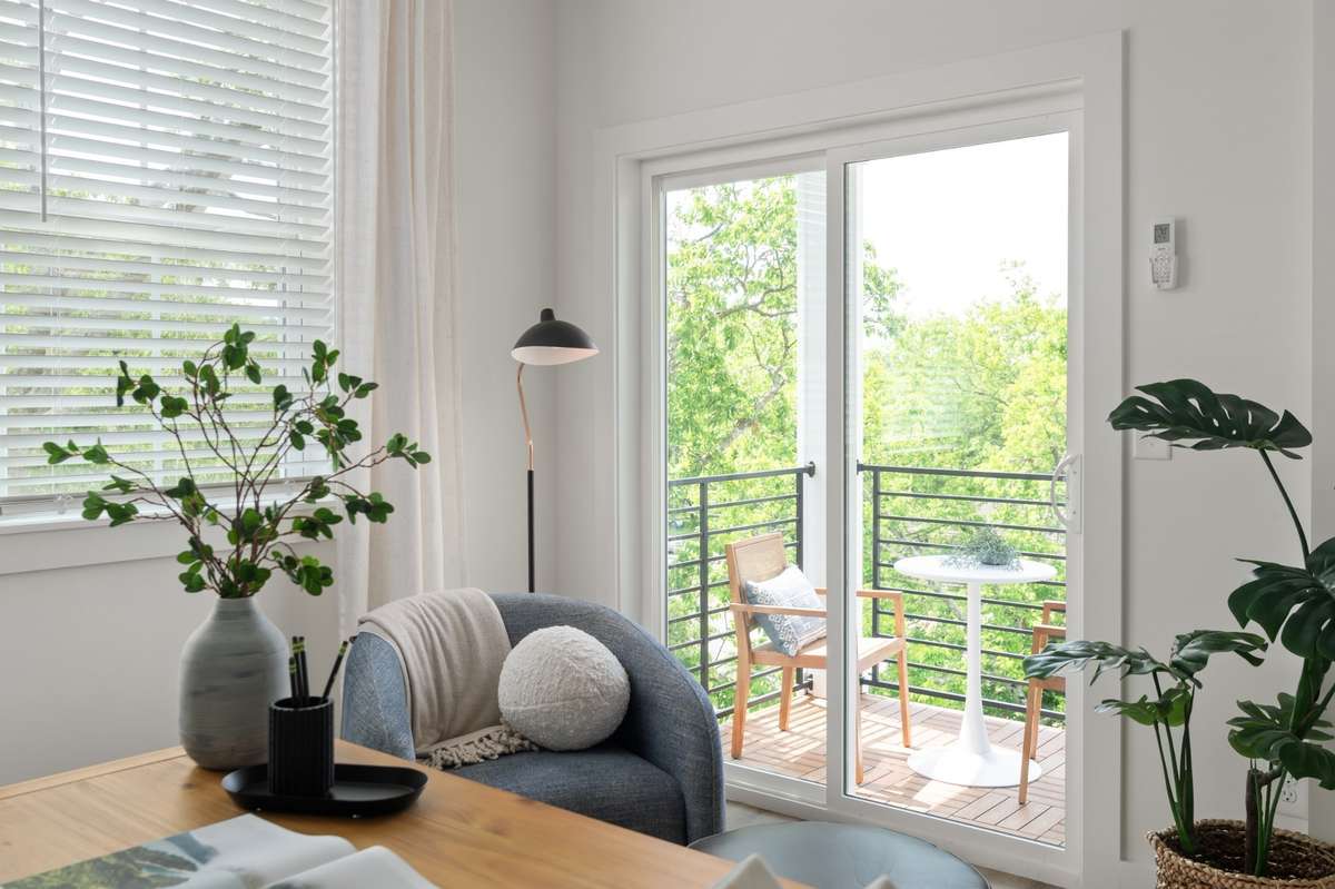 third floor offers a flex space with a covered patio and laundry room.  photos of similar model and not of actual home.