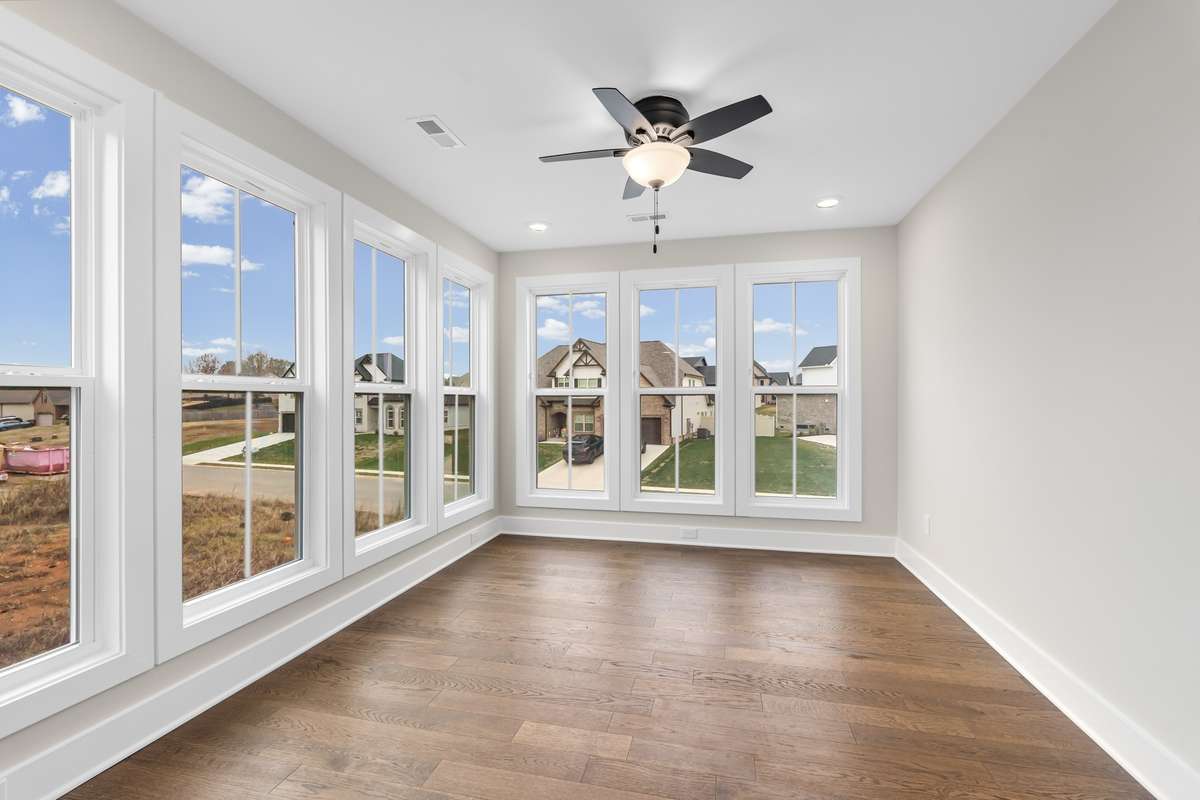 Welcome to 242 Bellshire Drive, a beautifully crafted home that blends luxury, functionality, and privacy. From the moment you step through the front mahogany door, you’re greeted by sun- filled living spaces, high- end finishes, and an open layout designed for everyday comfort. The gourmet kitchen features premium appliances, a spacious walk- in pantry, and a dedicated butler’s pantry—perfect for entertaining with ease. An inviting sunroom floods the home with natural light, while the electric fireplace in the main living area adds warmth and modern charm. Oak stairs and tile showers further elevate the quality throughout. Outside, the property offers privacy and a serene setting backed by a peaceful creek, creating a true sense of retreat. All bedrooms include walk- in closets for exceptional storage, and the unfinished bonus room provides an incredible opportunity—easily convertible into a fourth bedroom to fit your needs. The 8- ft garage door accommodates trucks and larger vehicles with ease, adding practical convenience to the home’s high- end appeal. With its thoughtful design and premium upgrades, this home delivers luxury living in one of Clarksville’s most desirable locations. 1% lender credit with use of preferred lender.