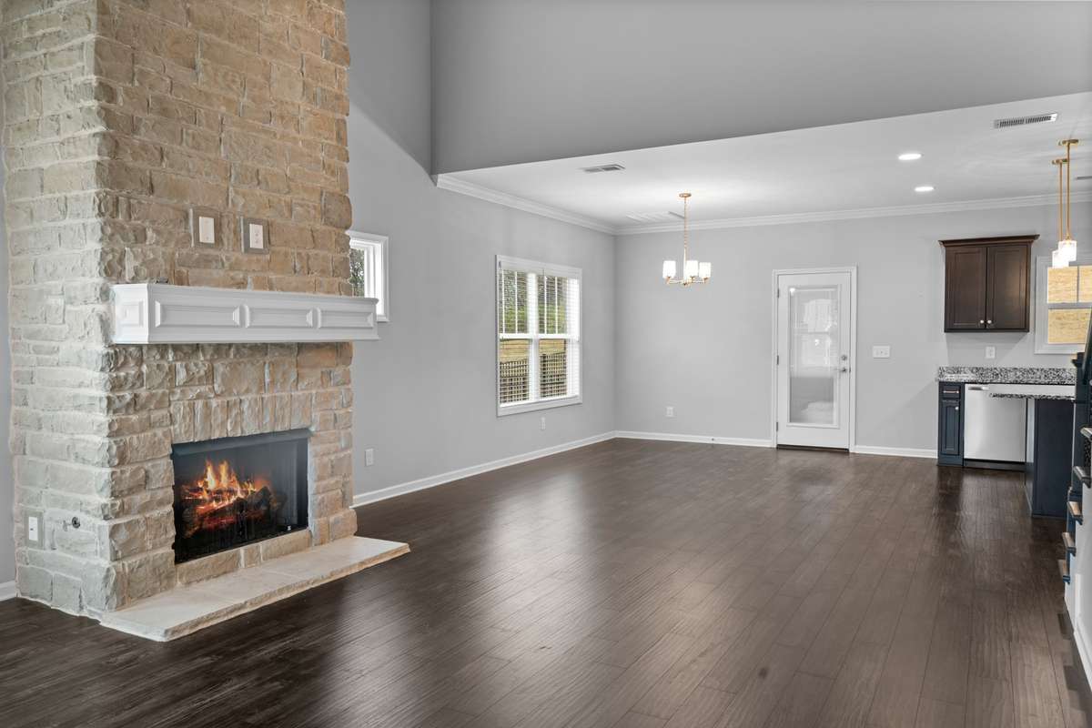 Beautiful brick- and- stone home featuring an open floorplan, 20 ft ceilings, abundant windows, and a stunning stone gas fireplace. The spacious main- level primary suite offers double vanities, a separate shower and soaking tub, and a walk- in closet. Neutral colors run throughout the home, complemented by quartz kitchen countertops, stainless steel appliances, a double oven, and extra seating at the island. Recent upgrades include an aluminum fenced backyard ( June 2024) and a brand- new AC coil ( 2025) . Enjoy a large lot, plenty of storage space, a covered front porch, and a covered back patio. A 2- car garage adds convenience and functionality. Move- in ready. Located in a desirable school zone and close to shops, dining, parks, and golf—this home truly has it all. 1% lender credit with use of preferred lender.