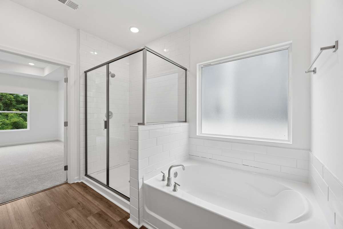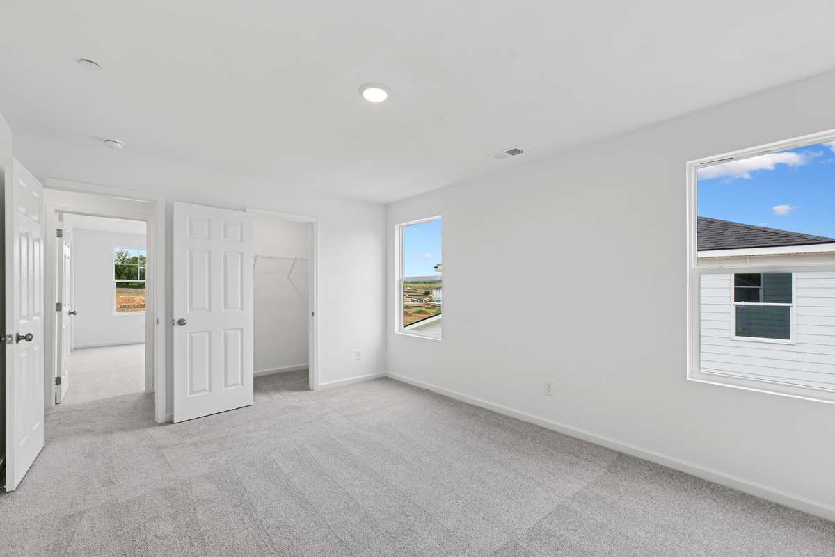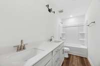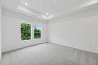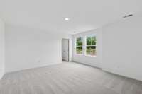The first- floor primary suite is a true showstopper, featuring designer black tiled floors, a deluxe tiled shower, a spa- like soaking tub, double vanities, and a large walk- in closet. Upstairs, a massive loft provides flexible space for movie nights, game days, or a second living area. You’ll also find three oversized secondary bedrooms, each with its own walk- in closet, and a beautifully appointed bathroom with double vanities, and plenty of storage.