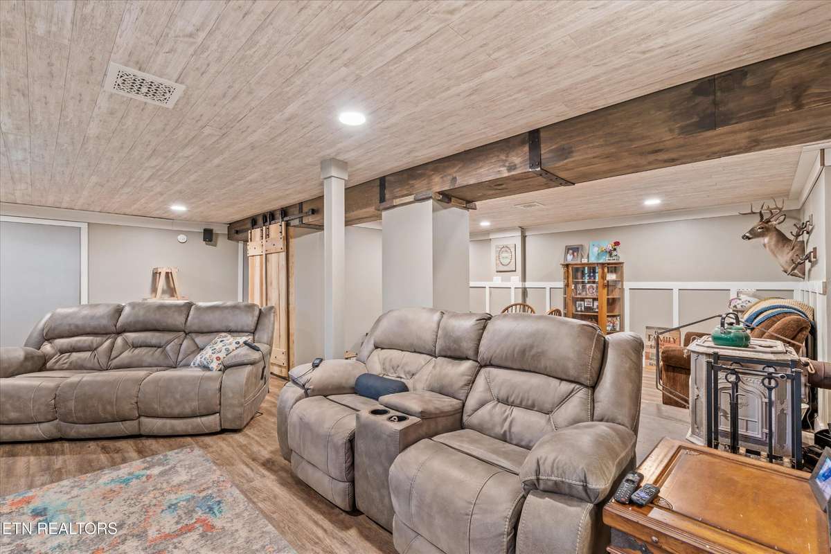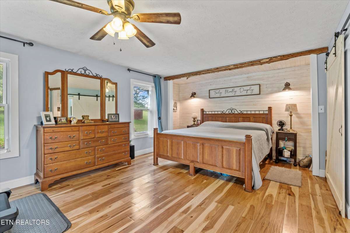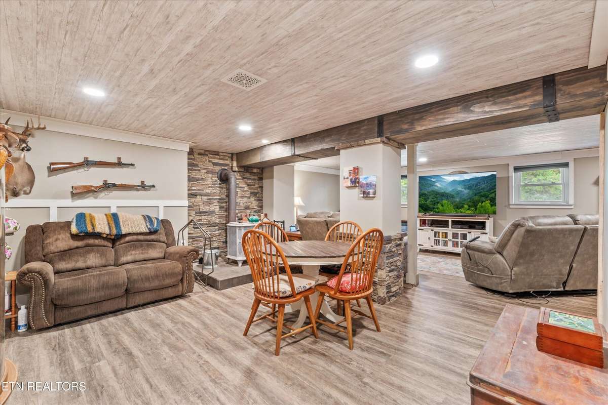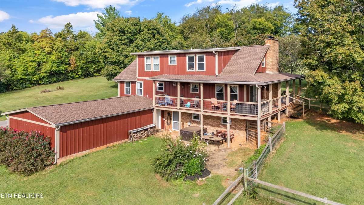 Back on market through no fault of the house. Price reduced and seller is motivated!! ! Stunning Craftsman- style home nestled on 8. 12 private, gated acres of rolling lawn and wooded beauty with mountain views. This custom 2 story home with a fully finished basement offers the perfect blend of luxury and functionality. The main level features natural hickory hardwood floors, a spacious living room with a true masonry fireplace, and a beautifully designed kitchen with custom Amish- built cabinetry, granite countertops, stainless appliances including a double oven with WiFi and air fryer. The dining area opens to a covered wrap- around porch with unobstructed mountain views—ideal for morning coffee and sunrises. The main- level owner' s suite is a true retreat with a massive bedroom, pass- through closet with laundry access, and a spa- like bath boasting a handmade tile shower, soaking tub, and one- of- a kind crafted double vanity. Upstairs you' ll find two generous bedrooms, each with walk- in closets and attached office/ bonus space, and a shared full bath. The walkout basement is an entertainer' s dream with a large rec room, second freestanding fireplace, full bath, and a hidden man cave/ study tucked behind sliding bookcases. There' s also a workshop and attached 3- car garage. Outside, enjoy fenced areas for pets and chickens, a newer metal shed, a massive pole barn with 5 stalls and RV parking with power. The property features a perfect mix of cleared space and wooded trails—ideal for hunting ( 10 point buck anyone?!) , hiking, or ATVs. Start your garden to go along with the blueberries, figs, apples and peaches that you already have and use the well for all your watering needs to save on utilities ( house is on city water) . Recent updates include all new Hardie board siding, gutters, and roof ( 2021) , fresh carpet upstairs, recently pumped septic and more.