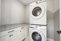 Head upstairs, where comfort and convenience come together. At the top of the stairs, you' ll find a well- placed laundry room, eliminating the need to carry clothes between floors. Two spacious secondary bedrooms sit nearby, each offering generous closet space and easy access to a pristine full bathroom.