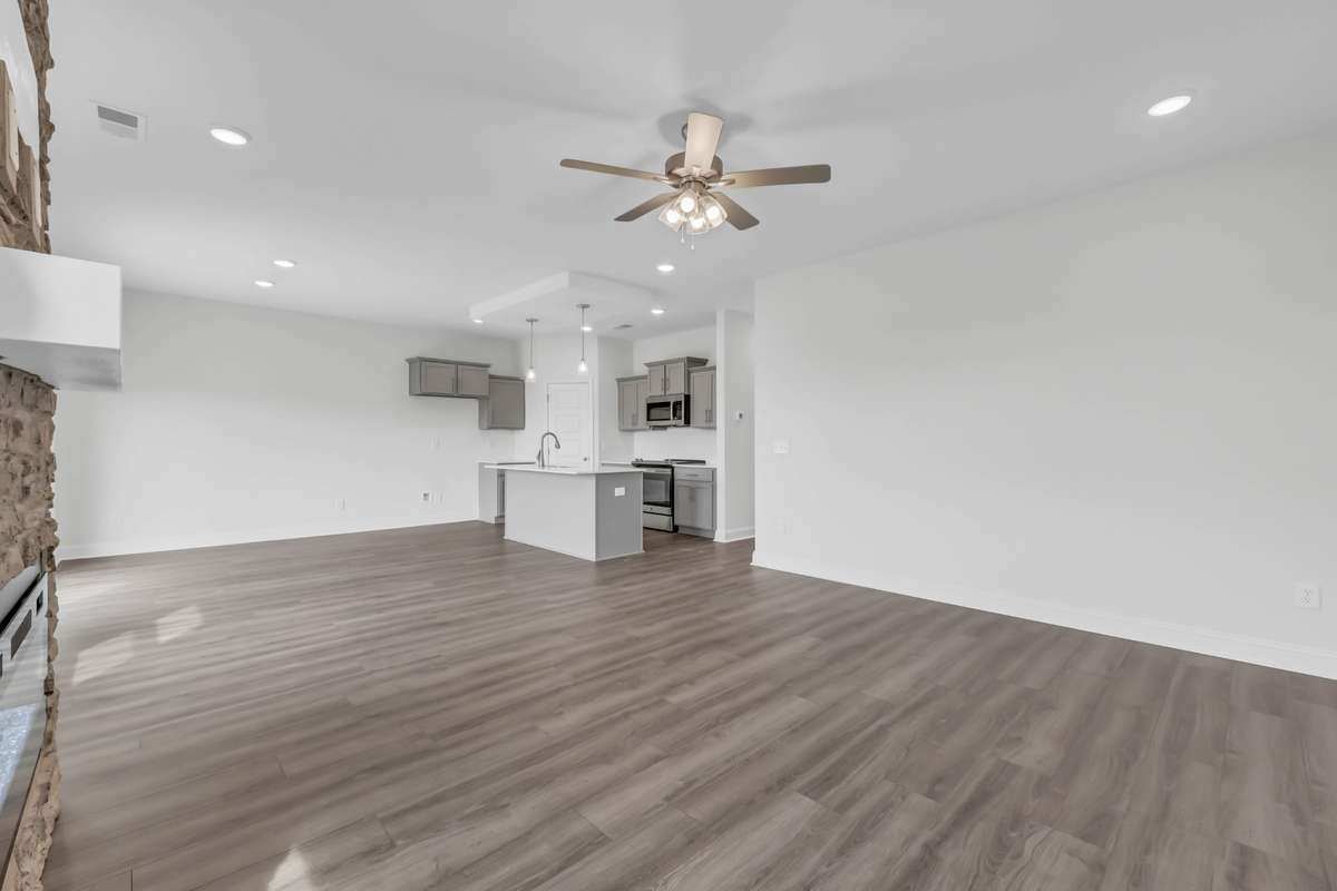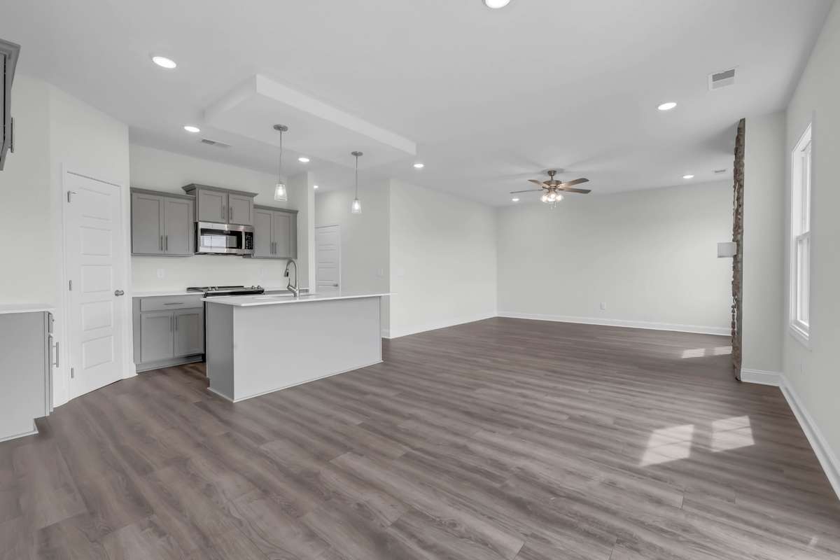 Seller offering $ 15, 000 towards buyer incentives! Discover this exclusive Hawkins Homes floor plan, perfectly situated in a peaceful country setting. The main level offers a bright, open- concept layout, featuring a beautifully designed kitchen with granite countertops, custom cabinetry, and a spacious pantry. Upstairs, you' ll find all bedrooms, including a conveniently located laundry room. The primary suite is a true retreat with a tray ceiling, a luxurious bath featuring a tiled shower, extended counter space, and a generous walk- in closet. Step outside to your covered outdoor living space, complete with a ceiling fan—ideal for relaxing or entertaining.