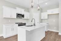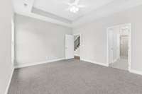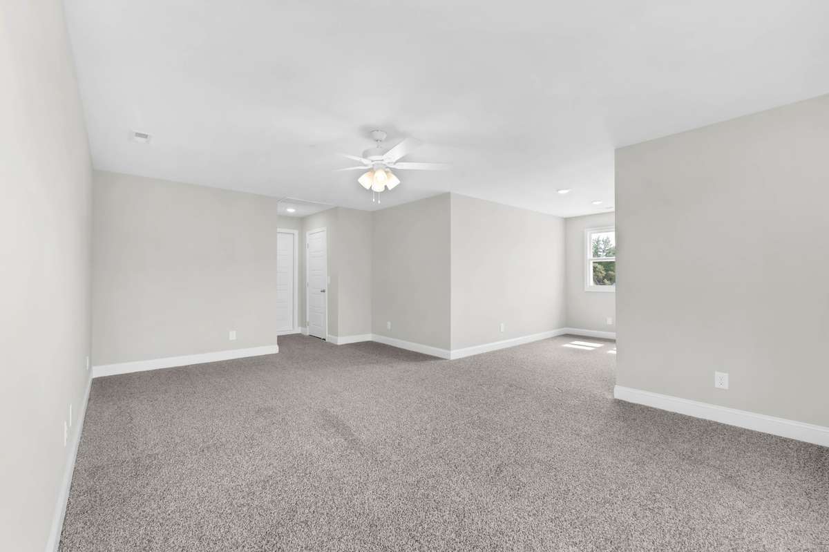 Offering $ 15, 000 towards buyer incentives! Includes a brand new refrigerator and blinds throughout! NO BACKYARD NEIGHBORS! This stunning ranch- style home with a spacious upstairs bonus room strikes the perfect balance between luxury and everyday comfort. With 9- foot ceilings throughout, the open layout features custom- cut granite countertops in the kitchen and island—ideal for cooking, gathering, and entertaining. A floor- to- ceiling stone fireplace in the great room brings warmth and elegance to the space. The primary suite offers a true retreat with double vanities, a designer showcase double tile shower, and a generous walk- in closet. Upstairs, the bonus room includes its own full bath, perfect for a guest suite, home office, or media space. Additional highlights include a state- of- the- art media convenience panel and an insulated, smart garage door for modern efficiency.