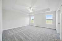 Seller offering $ 15, 000 in buyer incentives! Includes a privacy FENCE for your beautiful backyard! There’s still time to personalize your home with your own selections! This thoughtfully designed layout offers the perfect blend of open- concept living and traditional elegance, featuring a spacious kitchen and great room while still maintaining a separate formal dining area. All bedrooms are conveniently located on the second floor, including a stunning primary suite with a tray ceiling and the oversized walk- in closet you’ve been dreaming of. The primary bath showcases a designer double tile shower and a single- bowl vanity with extended countertop space. Step outside to the covered outdoor living area, complete with a ceiling fan—ideal for relaxing or entertaining.