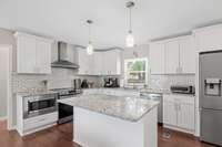 Beautiful and Spacious kitchen with granite top, undermount sink, tile backsplash and stainless appliances.  Beautiful and functional