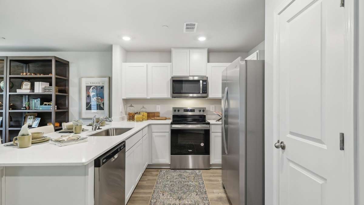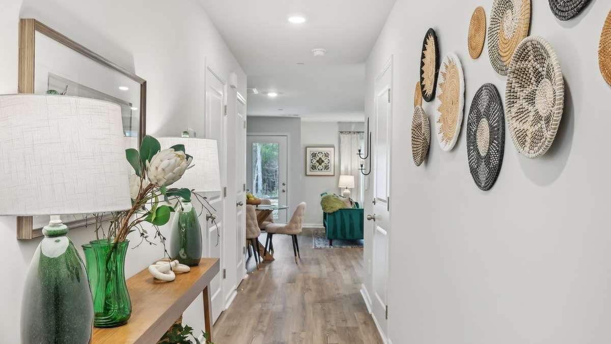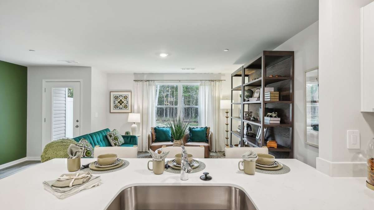 The Pearson is one of our newest townhomes at Saddle Trace in Lewisburg, Tennessee. This modern, open- concept floorplan features 3 bedrooms, 2. 5 bathrooms, and a 1- car garage within 1, 418 sq. ft. Enjoy low- maintenance townhome living paired with elegant design found only in the Pearson. Upon entering, a foyer and powder room welcome you before opening into the spacious kitchen and living area. The kitchen offers quartz countertop seating and plenty of room for a dining table. Upstairs, the primary bedroom boasts a walk- in closet and an ensuite bathroom with a double- bowl vanity. Two additional bedrooms provide ideal space for children, nurseries, or offices, each with ample closet space. The hallway includes a full bathroom and a convenient upstairs laundry room. Like all Nashville D. R. Horton homes, the Pearson comes equipped with the Home is