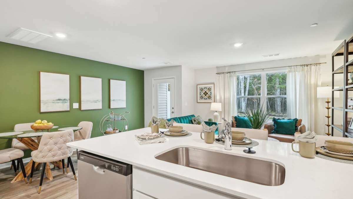 The Pearson is one of our newest townhomes at Saddle Trace in Lewisburg, Tennessee. This modern, open- concept floorplan features 3 bedrooms, 2. 5 bathrooms, and a 1- car garage within 1, 418 sq. ft. Enjoy low- maintenance townhome living paired with elegant design found only in the Pearson. Upon entering, a foyer and powder room welcome you before opening into the spacious kitchen and living area. The kitchen offers quartz countertop seating and plenty of room for a dining table. Upstairs, the primary bedroom boasts a walk- in closet and an ensuite bathroom with a double- bowl vanity. Two additional bedrooms provide ideal space for children, nurseries, or offices, each with ample closet space. The hallway includes a full bathroom and a convenient upstairs laundry room. Like all Nashville D. R. Horton homes, the Pearson comes equipped with the Home is