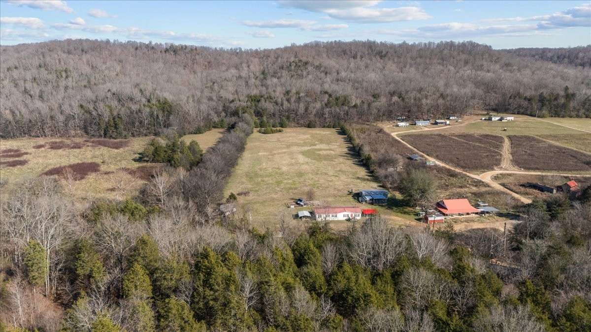 The property is loaded with outbuildings: a 3- bay 30x40 horse barn ( w/ electric & water) , pole barn, chicken coop, and two 8x12 storage sheds. Nature lovers will appreciate the creek in the front yard, the mature hardwoods ( timber value) , and a dry pond area with indications of a natural spring.