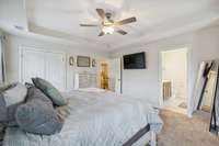 Upstairs, you’ll find three well- appointed bedrooms, including a tranquil primary suite, along with an expansive bonus room perfect for a playroom, home office, media room, or guest space. The additional bedrooms offer generous closet space and versatility to fit your needs.