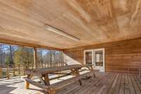 The double- decker barn adds a unique dimension to the property, offering a log- cabin ambiance with vaulted ceilings, a chandelier, and its own separate bathroom. It is perfectly suited as a workshop, creative studio, event space, or guest area.