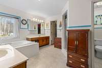 The main- level primary suite serves as a true retreat, highlighted by bay windows that frame the surrounding landscape and a cozy brick fireplace that anchors the room. The en- suite bathroom features a jetted tub, a walk- in shower, and well- designed his and hers walk- in closets. Upstairs, the remaining bedrooms are thoughtfully arranged and share a bathroom. For convenience, the home offers an additional attached two- car garage.