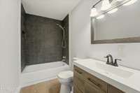 The main bathroom is beautifully updated with a tiled shower and a sleek new vanity. The primary bedroom includes its own ensuite bathroom, also refreshed with a new vanity. Outside, enjoy a great deck overlooking a large yard—perfect for relaxing, entertaining, or play. A storage shed is also on- site, perfect for any additional items you may need to stow away!