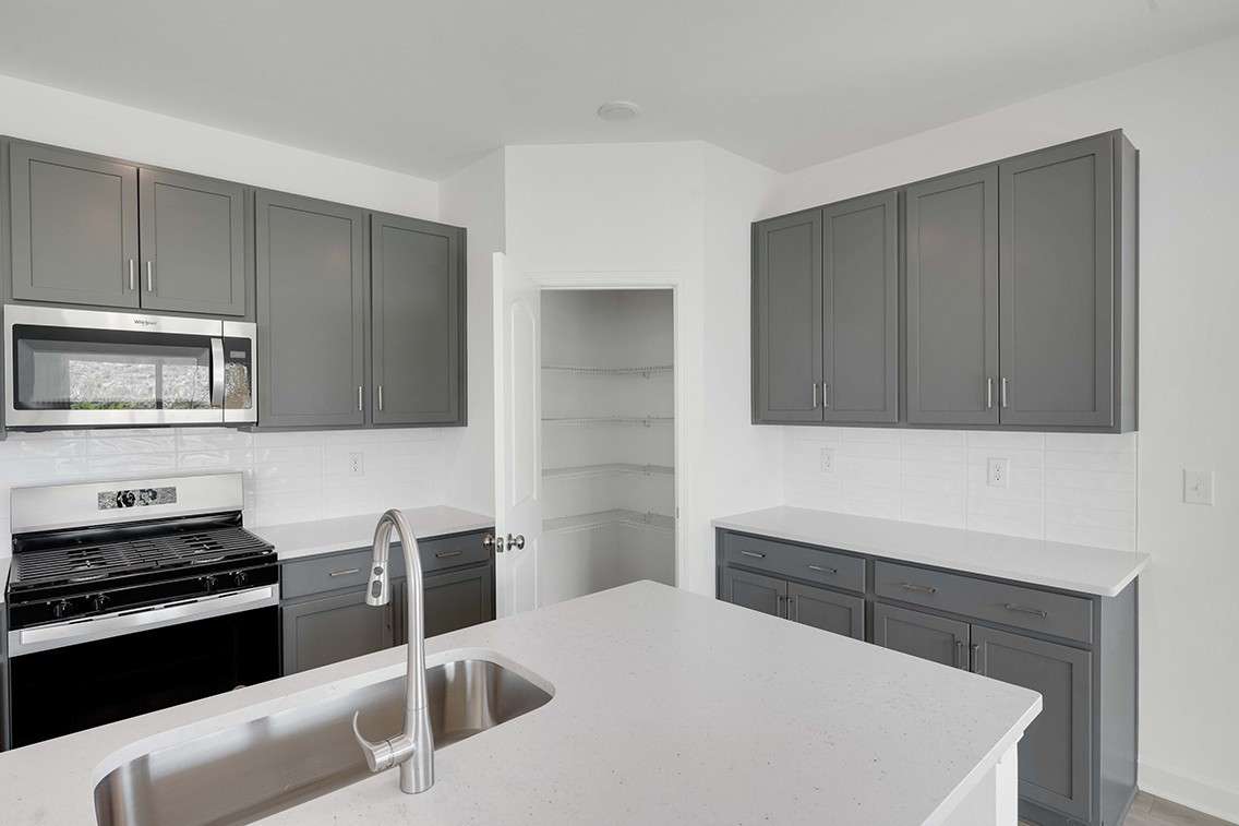 Welcome to the Harper plan at Barton Hills in Spring Hill, TN! This home is built with durable Hardie board siding and features gas heating and a gas range for comfort and efficiency. The main floor offers an open layout with a spacious great room, dining area, and bright kitchen with sleek gray cabinets, walk- in pantry, and plenty of cabinet space, perfect for entertaining.