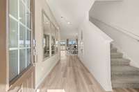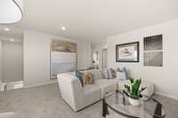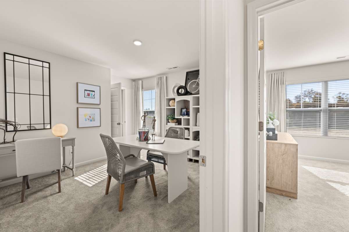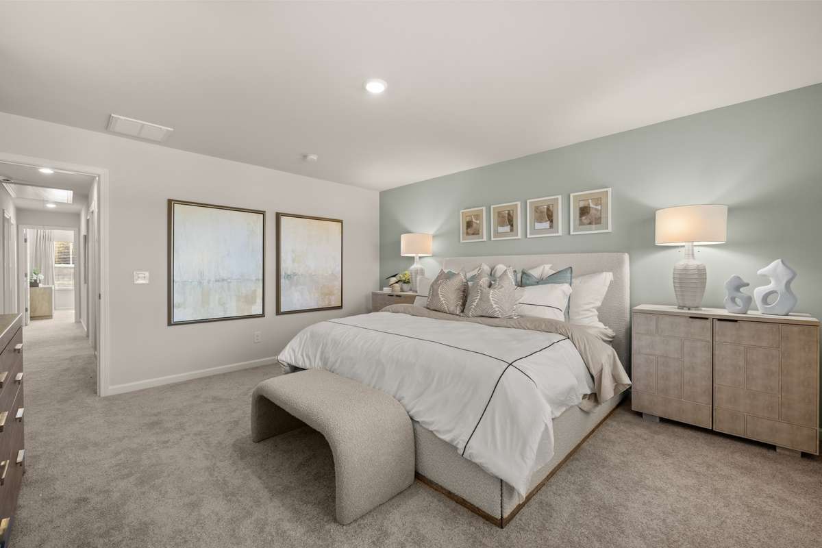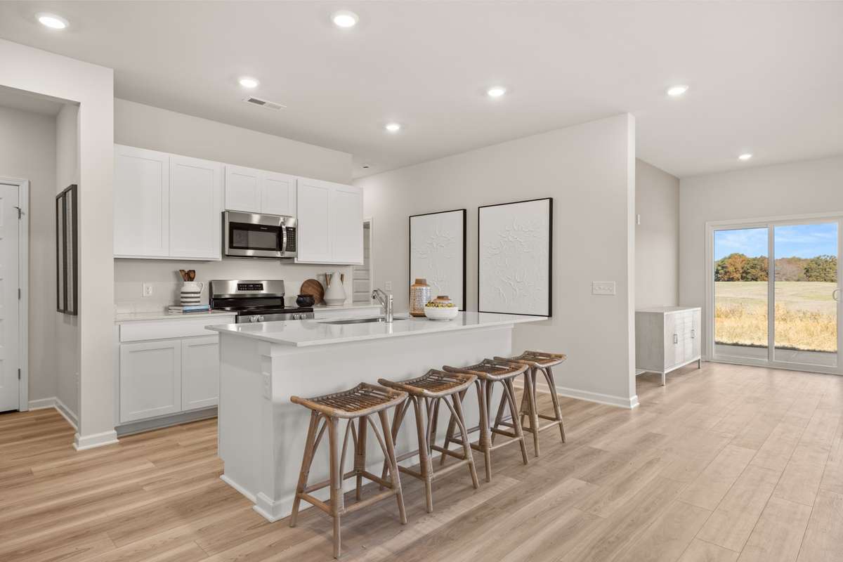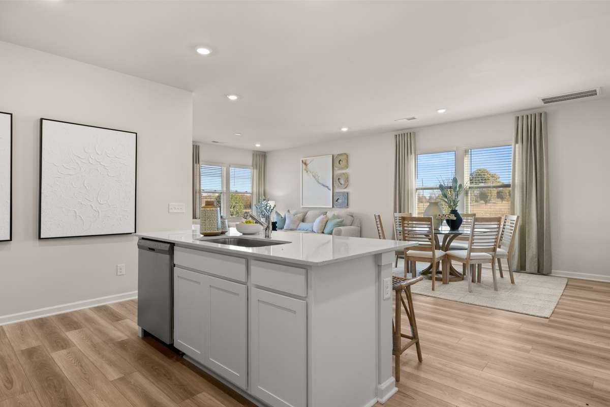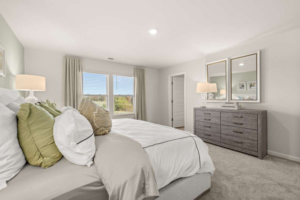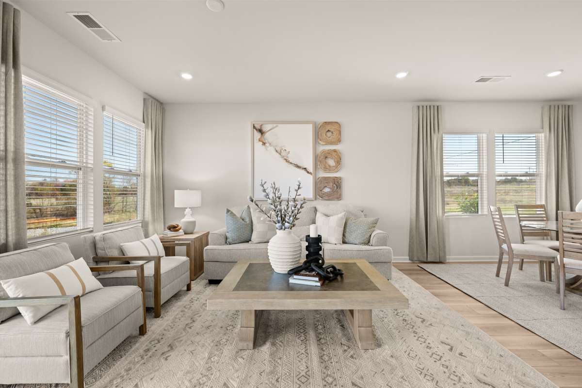 LOT # 44 - Ironwood. This new two- story home features a pleasing contemporary design. At the heart of the first floor, the Great Room extends effortlessly to the dining room and modern kitchen in an open- plan layout. Flex space offers versatility. The second floor hosts a bonus room and four bedrooms including a spacious owner’s suite. * Images from a furnished model of this home. Actual configuration and features may vary.
