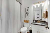 On the main floor, an oversized guest bedroom and full bath offer comfort for visiting family or provide the perfect spot for a quiet home office. Tucked privately on the opposite side of the home, the primary suite is a true retreat after a long day. Separate vanities create breathing room for morning routines, the oversized shower offers spa- like comfort, and the soaking tub promises a peaceful end to any evening.