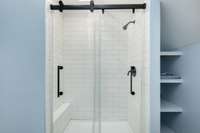 A Little Giant pressure system boosts water flow, and a step- free sidewalk entry adds convenience.
