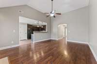 Three- bedroom, three- bath home with a large bonus room over the garage featuring a full bathroom, offering flexibility as a fourth bedroom or secondary living space. Open- concept floor plan with all primary bedrooms located on the first level. Main living area connects seamlessly to the kitchen and dining spaces for efficient use of square footage. Bonus room provides separation from main- level bedrooms. Backyard offers usable outdoor space for entertaining and recreation. Playground equipment and storage shed convey with the property.