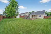 Three- bedroom, three- bath home with a large bonus room over the garage featuring a full bathroom, offering flexibility as a fourth bedroom or secondary living space. Open- concept floor plan with all primary bedrooms located on the first level. Main living area connects seamlessly to the kitchen and dining spaces for efficient use of square footage. Bonus room provides separation from main- level bedrooms. Backyard offers usable outdoor space for entertaining and recreation. Playground equipment and storage shed convey with the property.