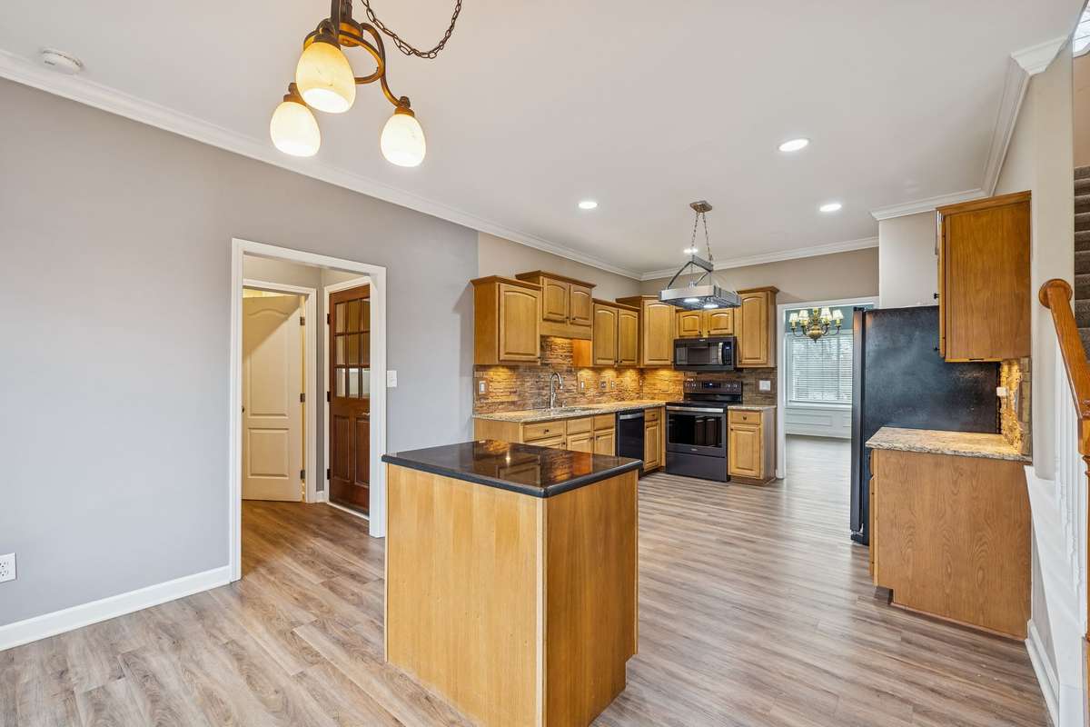 There’s a certain magic to this home—an easy comfort that greets you the moment you step inside. Sunlight filters through the large windows, warming the living room and its inviting wood- burning fireplace, setting the stage for cozy nights in and everyday moments that feel a little extra special. Just beyond, the eat- in kitchen steals the spotlight with granite countertops, a stone backsplash, and a layout that makes cooking, gathering, and lingering over meals feel effortless.