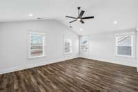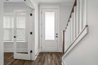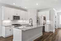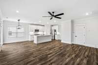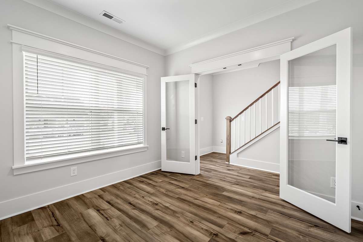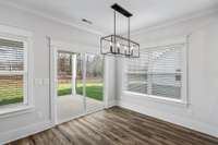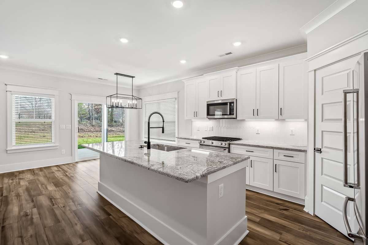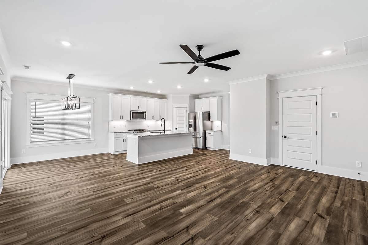 This stunning home features high- end finishes throughout, including crown molding, trim detail, and LVP flooring in main areas. The chef’s kitchen boasts KitchenAid appliances, soft- close plywood cabinets, under- cabinet lighting, and tile backsplash. Main- level guest suite offers privacy and comfort. Also on the main level you' ll find a spacious office that can be used any way you like! Enjoy vaulted ceilings, blinds on all windows, and a large laundry room with cabinets. Relax on the oversized covered patio with no rear neighbors. Community amenities include walking trails and a pond with fountain. A must- see!