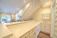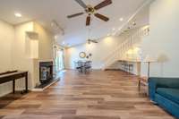 This charming 3br 2ba condo offers a perfect blend of comfort and convenience with stunning views of the spring- fed lake. The main level features a spacious, vaulted living with cozy gas fireplace and stylish LVP flooring. A convenient bar area complements the open layout, perfect for entertaining. The kitchen is efficiently designed for all your culinary needs, while the master suite provides a private haven. Upstairs you will find a guest bedroom, a loft- style bedroom, a shared bath and access onto a large walk- out balcony. The condo association handles all exterior and grounds/ maintenance along with city water, insurance on the building and the community pool. Sold partially furnished.