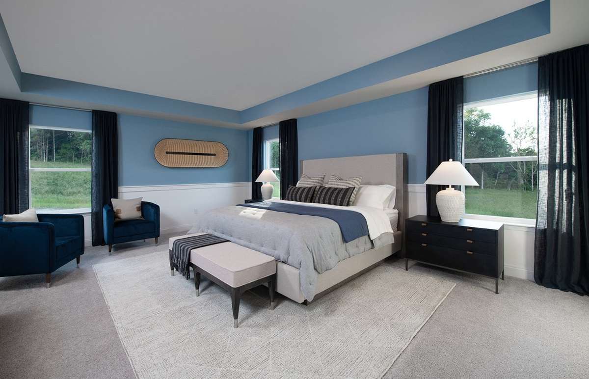 This impressive 20' x 16' owner’s bedroom offers a serene retreat with a tray ceiling and elegant recessed lighting that adds a touch of sophistication.