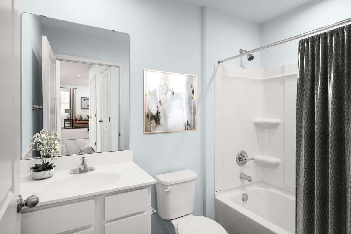 Richland Downs offers amazing new single- family homes in Murfreesboro TN. Now selling. The Hazel floorplan has it all – five bedrooms, a loft & a flex space! Walk in and be wowed by an open concept plan, large kitchen, and dinette. Tucked behind the kitchen is a bedroom and a full bathroom– did someone first floor bedroom? Retreat upstairs to your owner’s suite with en- suite bathroom with dual vanities and a walk- in shower, plus two large walk- in closets! The owner’s suite is also tucked away from the rest of the secondary bedrooms – hello quiet time! All appliances come included ( washer/ dryer too) . Buying with Ryan Homes allows you to personalize your interior so you get everything you want from the lot to the cabinets. You will also get a 1- 2- 10 Year Warranty!
