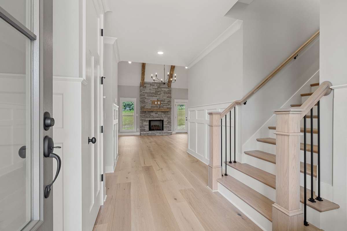 Exceptional Quality Construction by Eastland Construction Inc. $ 20, 000 toward closing cost and/ or rate buy down with Preferred Lender. The Birchwood Plan, , Great 4BR/ 3Bath plan, Living rm w/ Stone Gas Fireplace, Vaulted Ceilings w/ Wood Beams. Hardwood Floors In Living Rm, Kitchen, Eat- In, & Primary BR, Island Kitchen with Custom Maple Cabinets, Tile Backsplash, Hardwood Floors, Double Ovens, Built- In Microwave, Pantry, and Dishwasher, Primary BR on Main Level with Large Bath w/ Separate Shower and Large Tub, Double Vanities, & Custom Wood Closets. Tile in Baths and Full Utility Rm w/ Built- In Cabinets, 30x20 Recreation Rm w/ pre- wired Surround Sound, 4th BR and 3rd Bath Upstairs off Rec Room, Covered Back porch and Open Patio Area, Convenient Location close to Hwy 109 & I- 40.