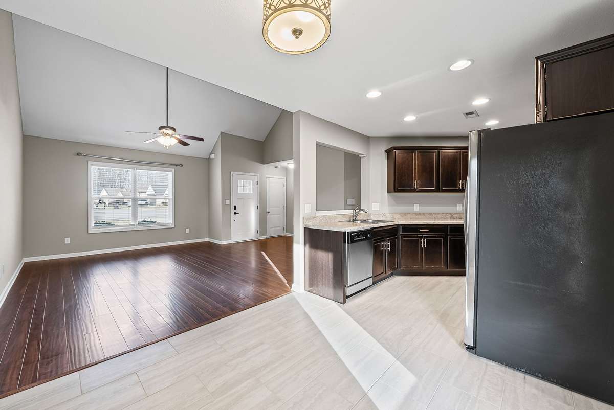 Beautifully well- kept 2015 3- bedroom and 2- bathroom home. Soaring high ceilings and fresh paint through out. Upgraded flooring to BRAND NEW tile in all wet areas: all bathrooms, kitchen, laundry. Large kitchen with eat in area opens to the large living area. Enjoy your morning coffee in the private backyard with no neighbors peering in with a wooded view in the flat fenced backyard. Seller is offering closing costs to buyer!!