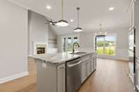 Exceptional Quality Construction by Eastland Construction Inc. $ 10, 000 toward closing cost and/ or rate buy down with Preferred Lender. Section 2 Now Open! Briley floor plan, Living rm w/ Hardwood Floors, Built- Ins, & Brick fireplace. Island Kitchen w/ Granite Countertops, Custom Maple Cabinets, Tile Backsplash, Hardwood Floors, Pantry, Microwave, and Dishwasher. Primary BR & 2 BRs on Main Level with Large Bath w/ Separate Shower and Large Tub, Double Vanities, & Granite Tops, Tile in Baths and Full Utility Rm, and 22x18 Rec Rm w/ pre- wired Surround Sound, Covered Back porch and patio, Exceptional Quality Construction Throughout Home!