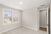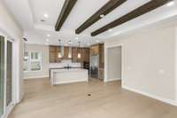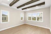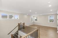 The private primary suite offers a spa- style bath, oversized walk- in closet, and direct laundry access. Upstairs, two separate bedroom wings provide flexible space for guests or family during the holidays.