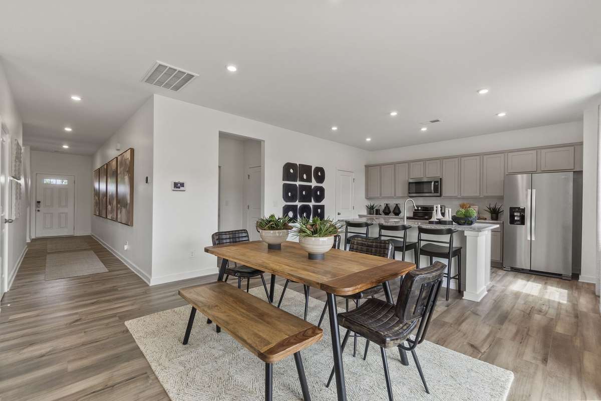 Step into this beautifully designed Harding plan at Barton Hills, offering a flexible layout and stylish finishes just steps from the community’s amenities. At the front of the home, one of two secondary downstairs bedrooms creates the perfect spot for a quiet retreat, or even a home office. Just beyond, the extended kitchen layout offers added counterspace, a walk- in pantry, and flows easily into the great room, providing an incredible amount of open space for hosting or just hanging out. A mud room with space for a valet/ drop zone adds convenience for busy days, while the covered patio off the kitchen invites outdoor entertaining and relaxation.